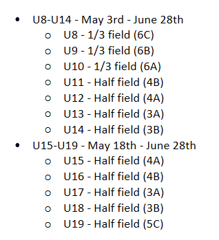 U14 - U19 (Birth dates between Aug 1, 2013 - July 31, 2008)New Age grouping for US Club Soccer